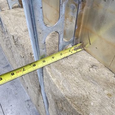Wall cavity is 5" thick and insulated with mineral wool insulation.