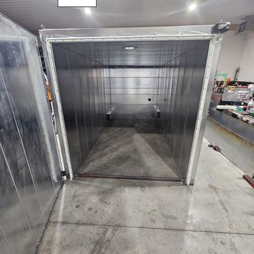 Wall panels are made out of 18g G90 galv sheeting, plasma cut and bent into wall panels. The panels bolt together and feature cutouts to reduce heat transfer to the outside wall.